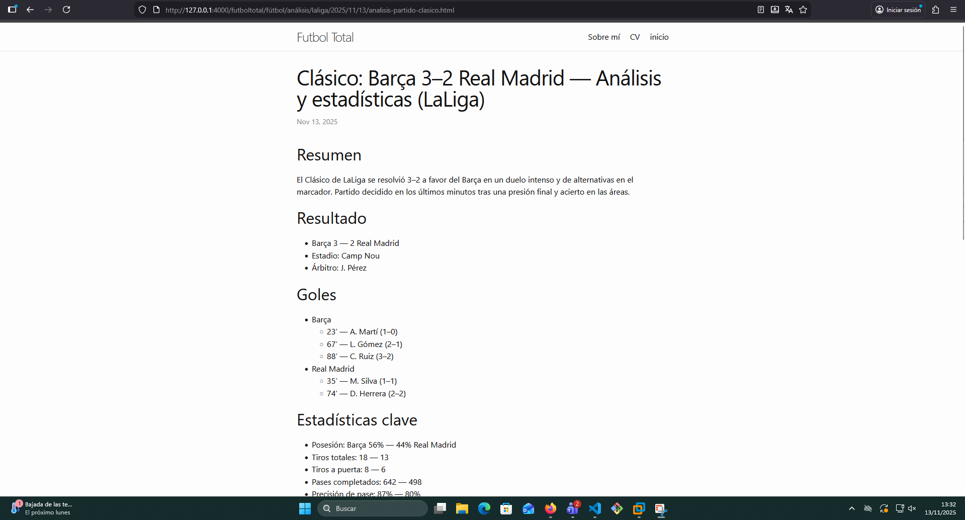 En esta práctica se ha creado un nuevo sitio web estático utilizando Jekyll y GitHub Pages, con una temática relacionada con el fútbol.