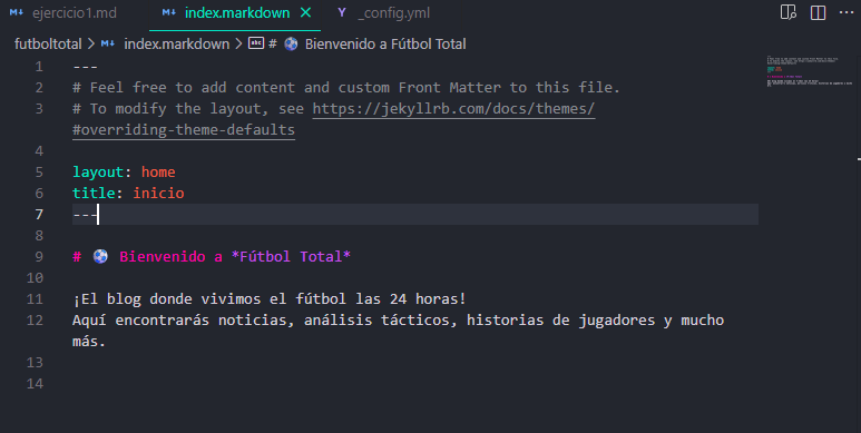 3. Modificación de la página de inicio (index.markdown)